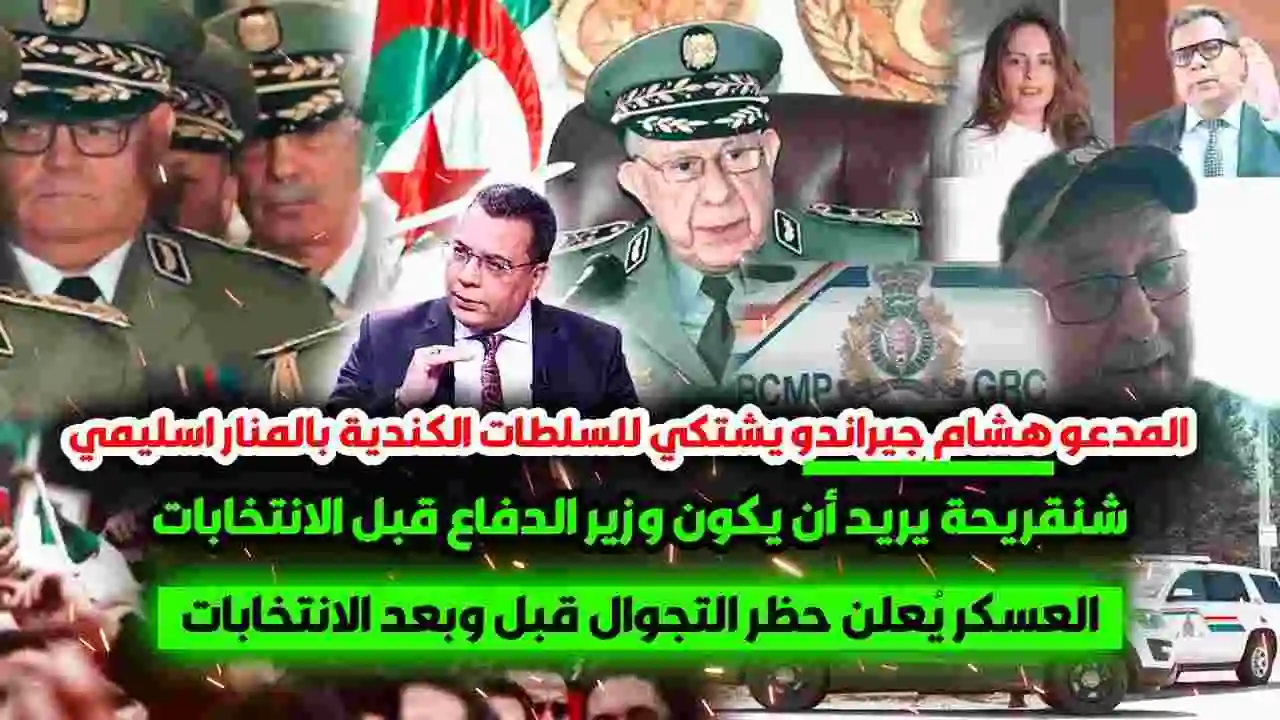 المدعو هشام جيراندو يشتكي للسلطات الكندية بالمنار اسليمي .. شنقريحة يريد أن يكون وزير الدفاع قبل الانتخابات ..العسكر يُعلن حظر التجوال قبل وبعد الانتخابات